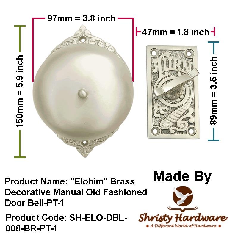 "Elohim" Brass Decorative Manual Old Fashioned Door Bell - PT-2